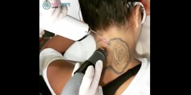Questa ragazza non è soddisfatta dell'ingombrante disegno di due rose che le hanno tatuato sulla nuca; si rivolge così a un centro specializzato nella speranza che il laser faccia sparire tutto. Fonte: https://www.instagram.com/p/BYCWne6lig9/?taken-by=newhopelsc