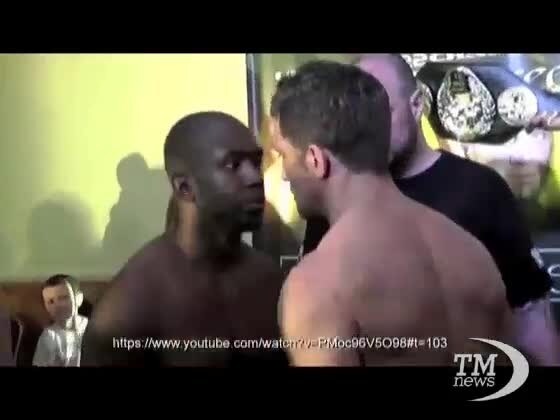 Folle provocazione di un pugile, che durante la presentazione di un match ha baciato l'avversario, che però non l'ha presa benissimo e cerca di colpirlo.