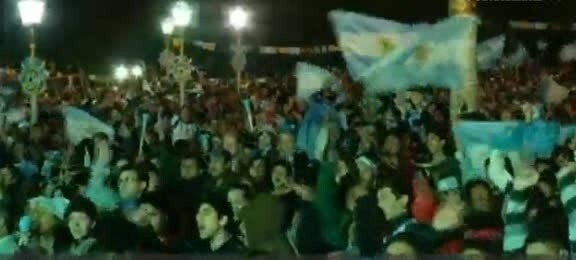 Buenos Aires. Al goal di Messi esplode l'esultanza di chi, in piazza, davanti ai maxischermi, seguiva e sosteneva la propria squadra. Poi si trattiene il fiato in piazza fino al fischio finale, che decreta la vittoria dell'Argentina.