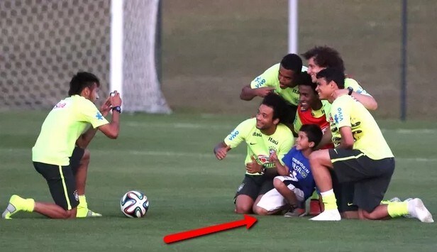 Bellissimo gesto di Neymar che impedisce agli addetti alla sicurezza di portare via un bambino che aveva invaso il campo per abbracciare i suoi beniamini. L'asso brasiliano lo porta al centro del campo d'allenamento e gli scatta una foto insieme agli altri giocatori verdeoro.