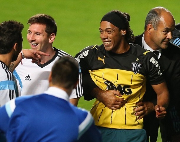 Finisce l'allenamento dell'Argentina e inizia una mini invasione dei tifosi brasiliani. La stessa della Seleccion Leo Messi viene prima fermato e abbracciato da un tifoso che gli "lustra" le scarpe, ricevendo così in dono la maglia dal campione del Barcellona. Subito dopo però arriva il sosia di Ronaldinho che saluta il suo "ex compagno". Dall'espressione sorpresa e divertita di Messi non è difficile penare che per qualche attimo il numero 10 argentino sia rimasto sconcertato dalla presenza di Ronaldinho, salvo poi capire che si trattasse di un sosia.