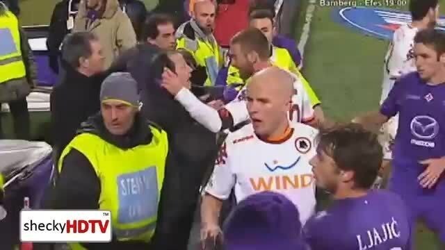 Un finale incandescente all'Artemio Franchi. Durante gli ultimi minuti dei tempi supplementari della gara di Tim Cup, dopo un fallo di gioco il giallorosso Dodò e il viola Cuadrado sono venuti alle mani, L'arbitro Rizzoli espelle entrambi ma le storie tese tra i due continuano anche all'esterno del terreno di gioco. Nel parapiglia cade uno steward. Accorrono anche gli altri giocatori per calmare gli animi.