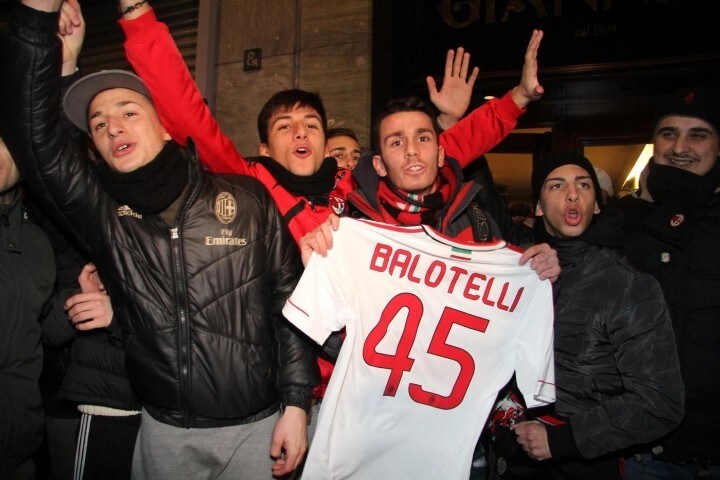 I fans rossoneri fanno festa all'esterno del noto ristorante milanese ed attendono il loro nuovo idolo Mario Balotelli. Cori anche in onore di Adriano Galliani