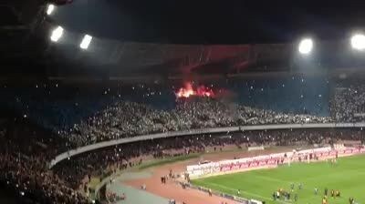 Una fantastica coreografia quella organizzata dai tifosi della Curva del Napoli che hanno voluto omaggiare il Vesuvio nella sfida contro la Juventus. Il messaggio è chiaro ed in risposta ai brutti cori che troppo spesso e da troppi anni accompagnano gli azzurri in giro per l'Italia. Quei cori che inneggiano all'eruzione del Vesuvio. La tifoseria partenopea ha risposto con questa bellissima coreografia e un grosso striscione nella parte inferiore con la scritta "Terra Mia".
