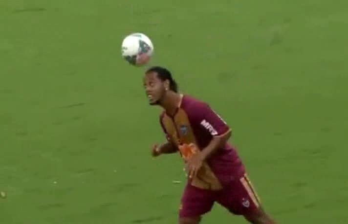 Ronaldinho palleggia con un piccolo tifoso