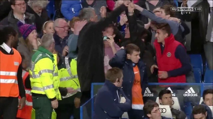 Mourinho si lancia tra i tifosi dopo il gol di Torres (28.10.2013)