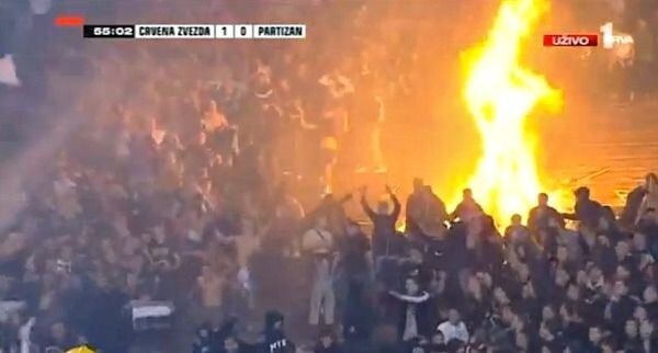 A Belgrado incidenti e Curva in fiamme nel derby Stella Rossa-Partizan