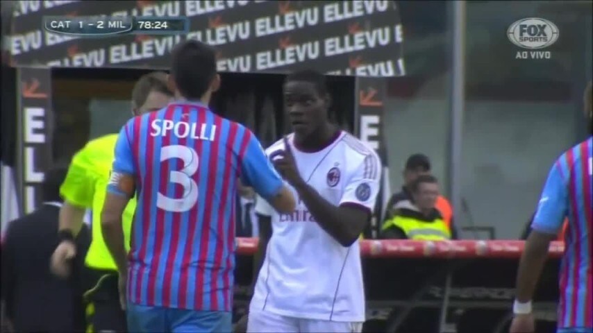 Scintille tra Balotelli e Spolli durante Catania-Milan, anticipo di mezzogiorno della 14/a giornata di domenica scorsa. L'attaccante rossonero a un certo punto si è avvicinato inferocito verso il giocatore argentino, accusandolo di averlo insultato pesantemente e in modo razzista. Dalle immagini televisive sembrerebbe che Balotelli abbia poi detto a chi cercava di calmarlo: "Mi ha detto negro di m...". Fatto sta che a nulla sono valsi gli inviti alla calma di Kakà prima e di Allegri dopo: il tecnico toscano alla fine è stato costretto a sostituirlo per evitare che la situazione precipitasse. Al momento dell'uscita, SuperMario ha poi fatto il gesto del tre (come i gol segnati dal Milan) verso il pubblico catanese, reo di avergli fischiato contro. "Lo scontro verbale fra Balotelli e Spolli? Sinceramente non so nulla - ammette De Canio -. Non mi sono accorto di niente. Conosco Spolli da poco; ma è una persona molto perbene. Credo che si sia trattato soltanto di un equivoco e non di insulti razzisti".