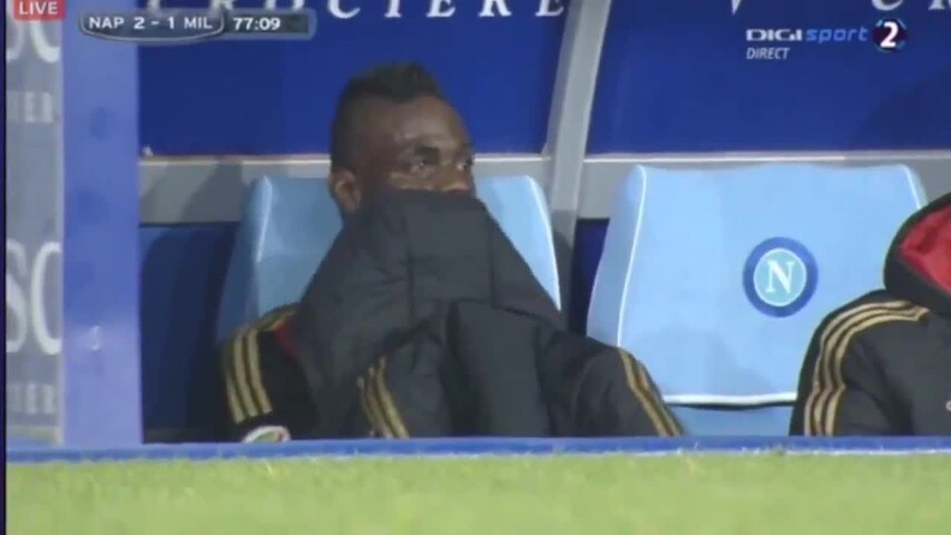 Una partita anonima per Mario Balotelli a Napoli, che gli costa una sostituzione molto prima della fine della partita. Supermario si siede in panchina e scoppia in lacrime.