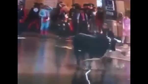 Illarramendi, travestito da Batman, affronta un toro. E' la trovata del calciatore del Real Madrid che, durante l'ultimo Carnevale, s'è divertito così assieme ad alcuni amici.