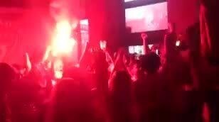 Ecco tifosi rumeni del Liverpool riuniti per assistere al match tra i Reds ed il Manchester United in un locale di Bucarest. Al gol del capitano Gerrard scoppia letteralmente la festa, con tanto di fumogeni