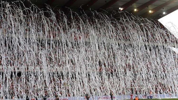 La "cascata di carta" dei tifosi dello Standard Liegi prima della partita