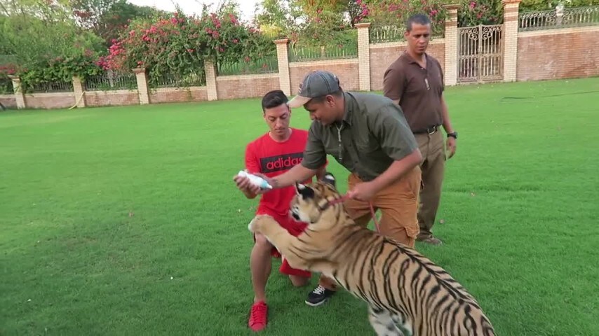 Ozil abbraccia la tigre: incontro da brividi a Dubai