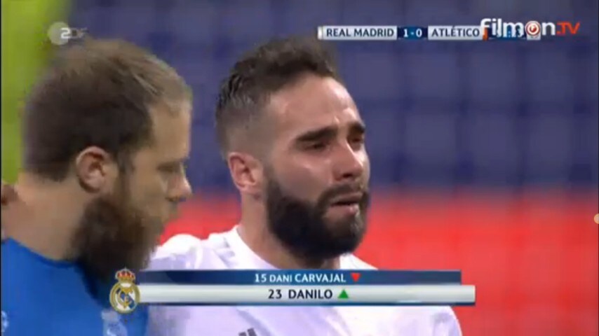 Carvajal è costretto a uscire per infortunio durante Real-Atletico. Il difensore blancos esce in lacrime e cede il posto a Danilo.