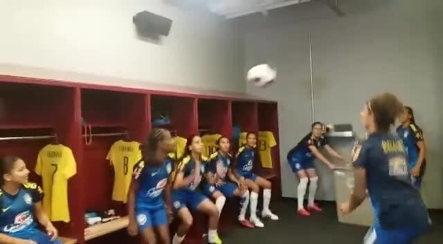 Non sono soltanto i calciatori brasiliani a mostrare le loro incredibili qualità tecniche. Anche le calciatrici si divertono nello spogliatoio mostrando la loro classe.