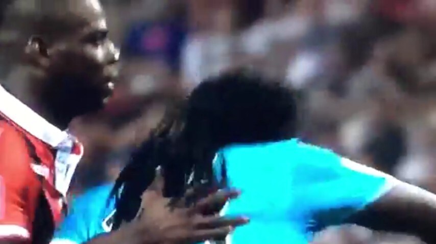 Mario Balotelli segna il primo gol con la maglia del Nizza su calcio di rigore. Ma prima della trasformazione del penalty Gomis dell'Olympique Marsiglia ha qualcosa da dirgli: Balotelli allontana l'attaccante avversario che però insiste e infine lo applaude ironicamente.