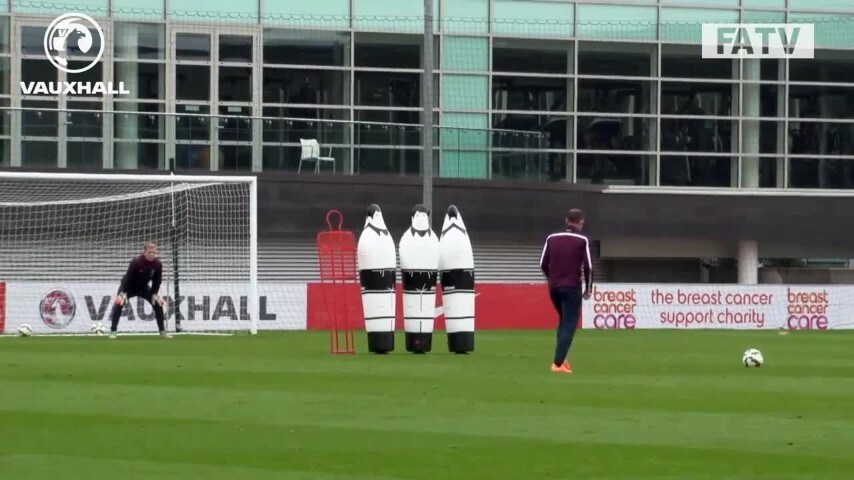 Durante l'allenamento della nazionale prima della gara contro l'Estonia, Wayne Rooney si allena calciando delle punizioni dalla distanza. Ecco la traiettoria con cui l'attaccante del Manchester Uniited beffa Joe Hart.