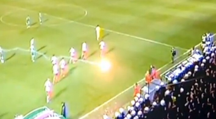 Ultras del Panathinaikos lanciano un fumogeno nella panchina dell'Olympiakos