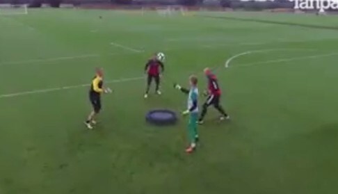 Quattro portier, un pallonei e un trampolino: l'allenamento è spettacolo puro