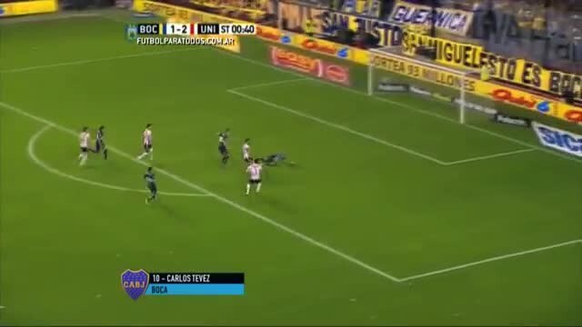 Carlitos Tevez mette a segno il suo primo gol nel campionato di Primera Division in Argentinanella sua nuova esperienza al Boca. Tuttavia non basta ad evitare la sconfitta contro per 4-3 contro l'Union. Inutili anche i due gol di Calleri, gioiellino partner dell'Apache conteso da mezza Europa.