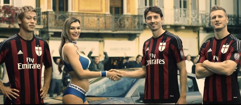 Montolivo, Honda, De Sciglio, Abate e il tecnico Mihajlovic protagonisti dello spot della Toyo Tyres, sponsor del Milan. I 4 sono impegnati in un servizio fotografico quando diventano improvvisamente eroi sventano una rapina. Ma si tratta ovviamente di uno spot di uno degli sponsor della società rossonera.