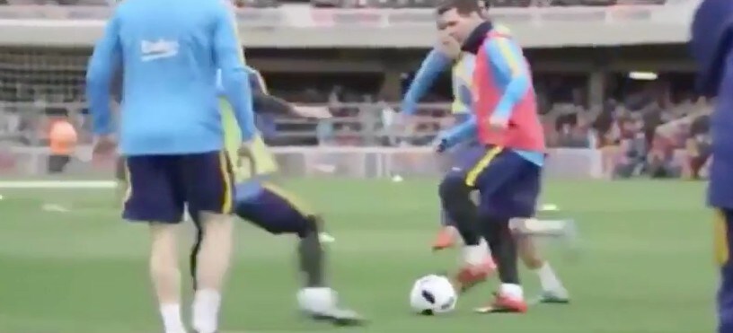 Il "tremendo" tunnel di Lionel Messi a Mascherano in allenamento