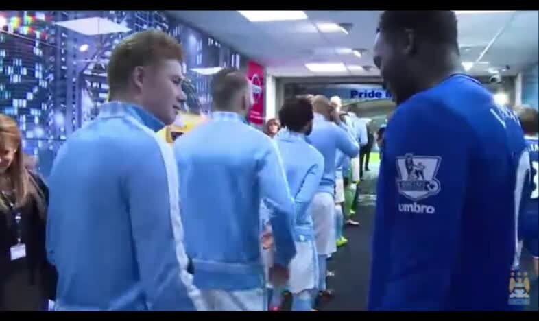 "La migliore stretta di mano i sempre", qualcuno l'ha definito così il saluto che ha visto protagonisti Kevin De Bruyne e Romelu Lukaku. I due giovani talenti di Manchester City ed Everton, sono compagni anche nel Belgio e si sono incontrati durante l'ultima partita di Premier League. La camera all'interno del tunnel li ha immortalati in una stretta di mano davvero inusuale.Fonte: https://www.youtube.com/watch?v=15t5Pkz0vbI