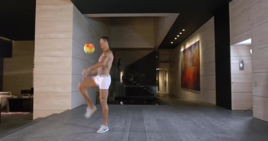 Cristiano Ronaldo palleggia in boxer a casa per uno spot