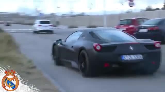 Una Ferrari esce dal centro di allenamento del Real Madrid: Toni Kroos sfreccia in strada