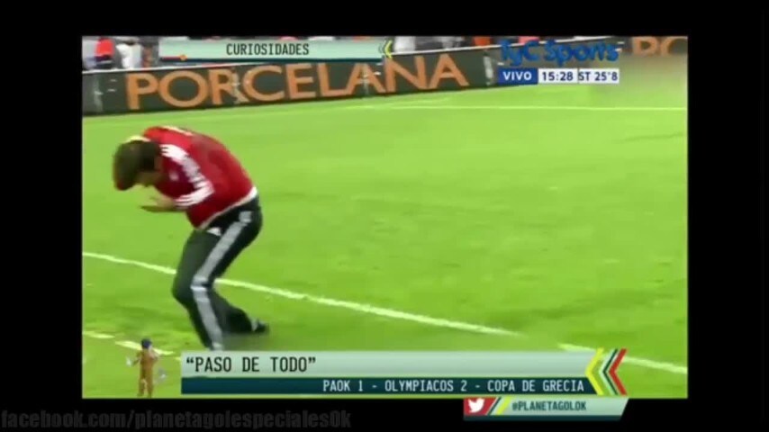 Durante una partita valevole per la Coppa di Grecia tra Paok Salonicco e Olympiakos, l'allenatore degli ospiti è stato colpito da un oggetto lanciato in campo. Probabilmente era un bicchiere d'acqua pieno di ghiaccio.