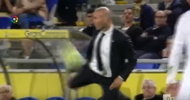 Zinedine Zidane è ormai un allenatore a tutti gli effetti, ma non ha dimenticato come trattare un pallone. Ecco durante l'ultima sfida del suo Real Madrid contro il Las Palmas come controlla un pallone che arriva verso di lui.