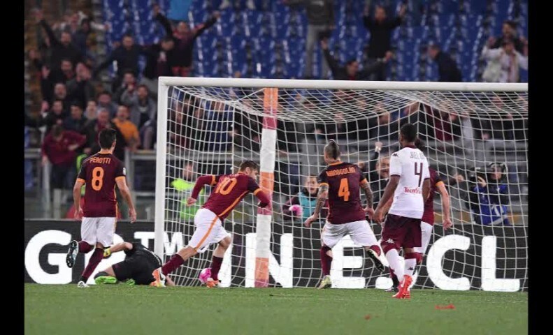 Totti ancora protagonista con la maglia della Roma. Entra a pochi minuti dal termine e prima segna la rete del pareggio e dopo quella del sorpasso su rigore. Carlo Zampa, storico telecronista giallorosso, non è riuscito a trattenere l'emozione.