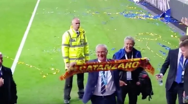 Da Catanzaro a Leicester per omaggiare Claudio Ranieri e il suo Leicester. Al tecnico italiano viene regalata una sciarpa goallorossa della squadra militante in Lega Pro e vengono rivolti cori d'affetto.