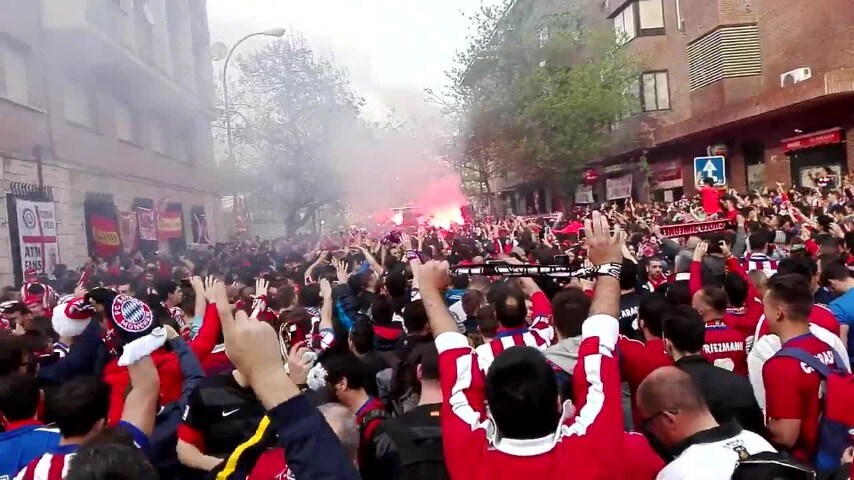 Prima della semifinale di andata della Champions League tra Atletico Madrid e Bayern Monaco, all'esterno del Vicente Calderon era una bolgia, pronta ad entrare nello stadio.La partita si è conclusa con il risultato di 1 a 0 a favore dei padroni di casa.