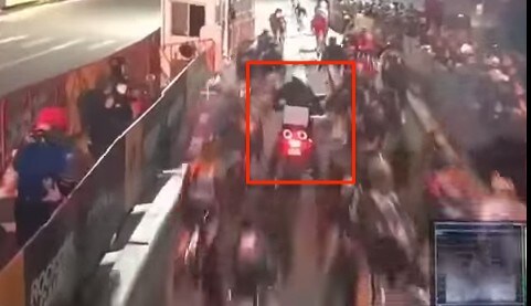 Moto ferma in strada: tamponamento a catena durante la corsa ciclistica
