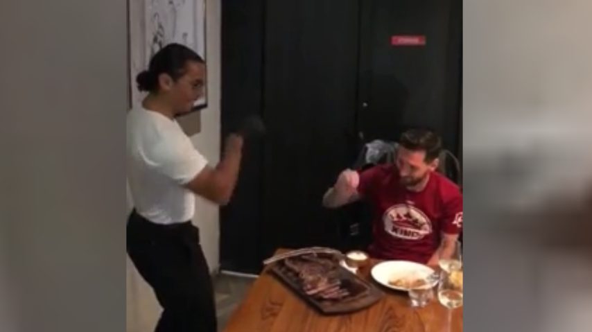 Salt Bae experience per Leo Messi: il calciatore argentino mette il sale sulla carne come il famoso chef, rituale che lo ha reso famoso in tutto il mondo.