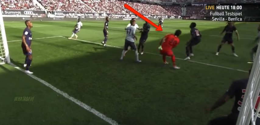 Traiettoria calcolata male su calcio d'angolo per Gigi Buffon che subisce un gol dal Bayern Monaco durante una partita amichevole.