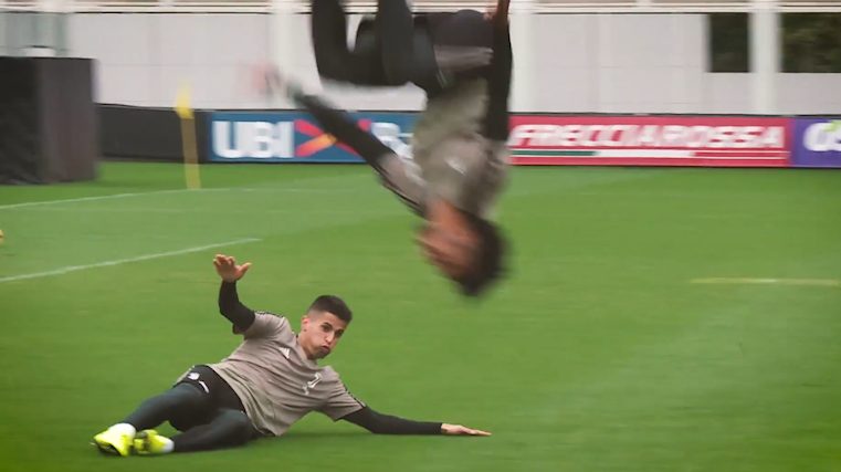 L'esultanza che ricorda un grande campione: Cuadrado, dopo aver segnato in allenamento, si esibisce in un'acrobazia che fa tornare in mente l'ex Inter Obafemi Martins, diventato celebre anche per le sue capriole.