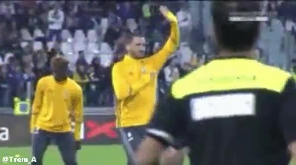 Leonardo Bonucci si riscalda prima della paartita allo Juventus Stadium e i tifosi gli tributano un'ovazione data la sua presenza che coincide con i problemi di salute che nell'ultimo periodo hanno interessato il figlio Matteo. Bonucci si gira verso i tifosi e si inchina come ringraziamento.