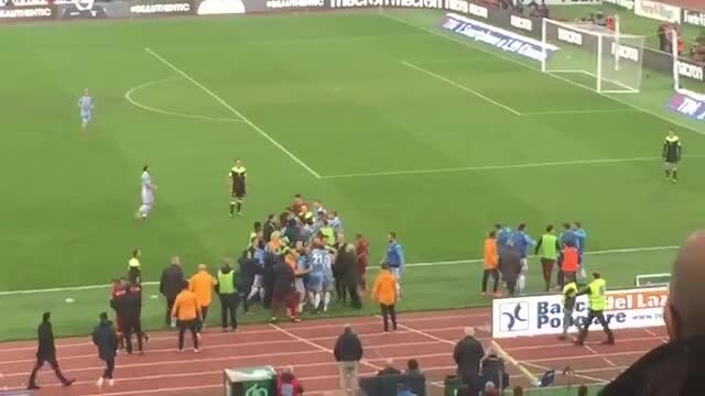 La rissa dopo il gol di Strootman ripreso dagli spalti. Una scaramuccia tra l'olandese e Cataldi, seduto in panchina ha fatto degenerare la situazione e ha coinvolto gli altri calciatori di Roma e Lazio.