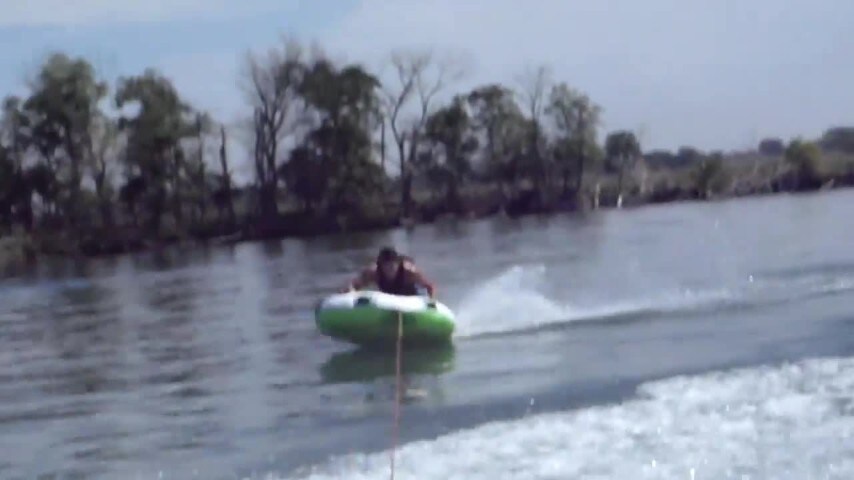 Il video viene dal Lago Sakakawea, un lago artificiale situato nel cuore del Nord Dakota. Il ragazzo sta praticando il "tubing", un'attività che si svolge in acqua (principalmente fiumi o laghi) e sulla neve: in questo caso la ciambella, legata ad una barca con una corda, viene trainata per acquisire velocità e provocando salti e ribaltamenti incredibili; il ragazzo gira su se stesso per un paio di volte. Fonte: https://www.youtube.com/watch?v=zgbrNjpfxIM