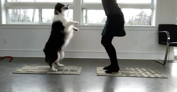 Esegue gli stessi movimenti della sua padrona: quello che fa questo cane ti sbalordirà