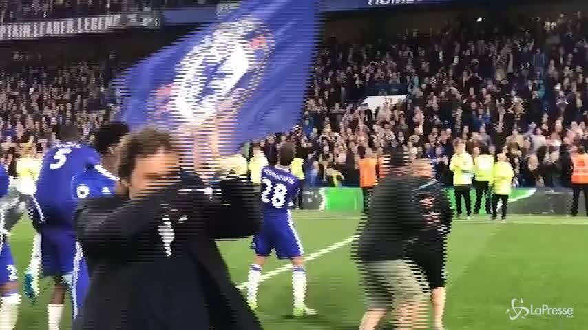 Grande festa lunedì sera a Stamford Bridge per i neo campioni di Inghilterra del Chelsea di Antonio Conte. I "Blues" hanno celebrato il titolo davanti ai propri tifosi superando il Watford di Mazzarri con uno spettacolare 4-3. Dopo il triplice fischio via ai festeggiamenti in campo e sugli spalti.