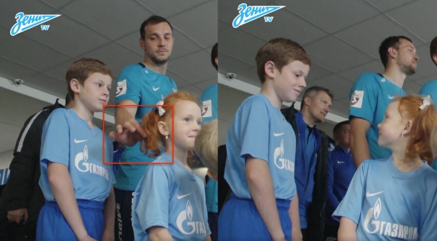 Lo scherzo di Artem Dzyuba alla bambina in fila prima di entrare in campo per la gara: il calciatore dello Zenit di Mancini le fa credere che a tirarle i suoi capelli rossi sia stato il bambino dietro di lei. Lui prova a difendersi, ma non c'è niente da fare. Fonte video: https://www.facebook.com/fczenit/videos/1528668703859728/