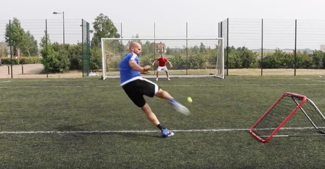 Una giocata fenomenale: palleggi, rimbalzo contro la rete, stop di petto e magnifico tiro che si stampa sotto l'incrocio. Daniel Cutting mette in mostra le sue doti da freestyler con una piccola pallina da tennis.