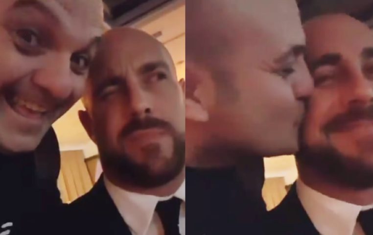 Il famoso siparietto di Peppe Iodice sul "nonno" con Pepe Reina: il portiere sta al gioco del comico napoletano e fa un occhiolino di approvazione. Fonte video: https://twitter.com/peppeiodice1/status/932518126750720000