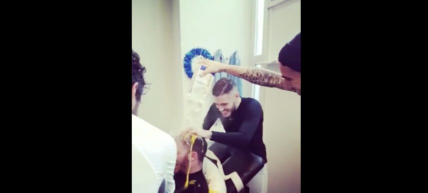 In occasione del giorno del suo compleanno, Davide Santon viene festeggiato dai compagni di squadra che però hanno in serbo uno scherzo. Icardi e compagni cospargono la testa del difensore con uova e farina mentre è steso sul lettino indifeso. Fonte video: https://www.instagram.com/p/Bdc4iPqnN94/?hl=it&taken-by=mauroicardi