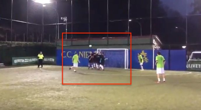 Una bellissima magia di Francesco Totti a calcetto: l'ex capitano giallorosso segna con la sua specialità, il cucchiaio, su calcio di punizione ravvicinato. Le immagini fanno riferimento al torneo che si svolge sul campo al Circolo Aniene.