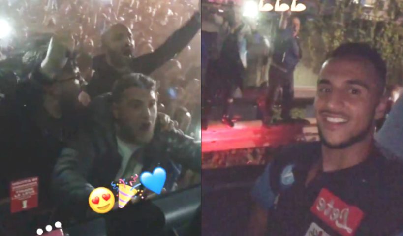 Ounas riprende la grande folla all'aeroporto di Capodichino e dall'interno del pullman si sente qualche risata e qualche commento su quanto sta accadendo.