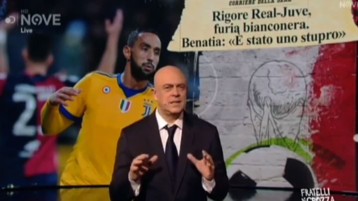 Inizia il comico con una provocazione su Real-Juve Una brutta gara di volgarità che inevitabilmente si è subito riversata sui social, dilagando: è quella fra il comico Maurizio Crozza e il giocatore marocchino della Juventus Medhi Benatia, andata in onda fra Tv e Instagram. Crozza, durante l'ultima puntata di "Fratelli di Crozza" ha parlato della partita di Champions e si è soffermato sulle dure parole di Buffon e dello stesso Benatia. Il portiere aveva detto: "L'arbitro non ha sensibilità, ha un bidone di spazzatura al posto del cuore", e il comico ha risposto con una frecciatina sulla società bianconera: "Pensa se tutti gli arbitri che hanno dato un rigore a favore della Juve all'ultimo minuto avessero un bidone di spazzatura al posto del cuore avremmo risolto il problema della raccolta differenziata". Poi è passato al commento del marocchino che della decisione arbitrale aveva detto: "È stato uno stupro", e l'ha commentata con una ironia che scade nel volgare: "Ma Benatia, come è stato uno stupro? Benatia, bisogna stare attenti a usare le parole. Non puoi parlare di stupro. Sei tu che hai fatto un'entrata del c... al 93'. Io non so se tu hai un'idea di cosa sia uno stupro, nemmeno io ce l'ho" e poi continua fino a invitare il giocatore, "se proprio vuoi provare", a prendere il prossimo "fallo in area" e metterselo nel c... Le parole del comico hanno fatto inviperire Benatia che, su Instagram, ha risposto per le rime: "E se vuoi provare sono a Vinovo tutti i giorni, ti aspetto...", condito da altri insulti e volgarità sempre più esplicite.